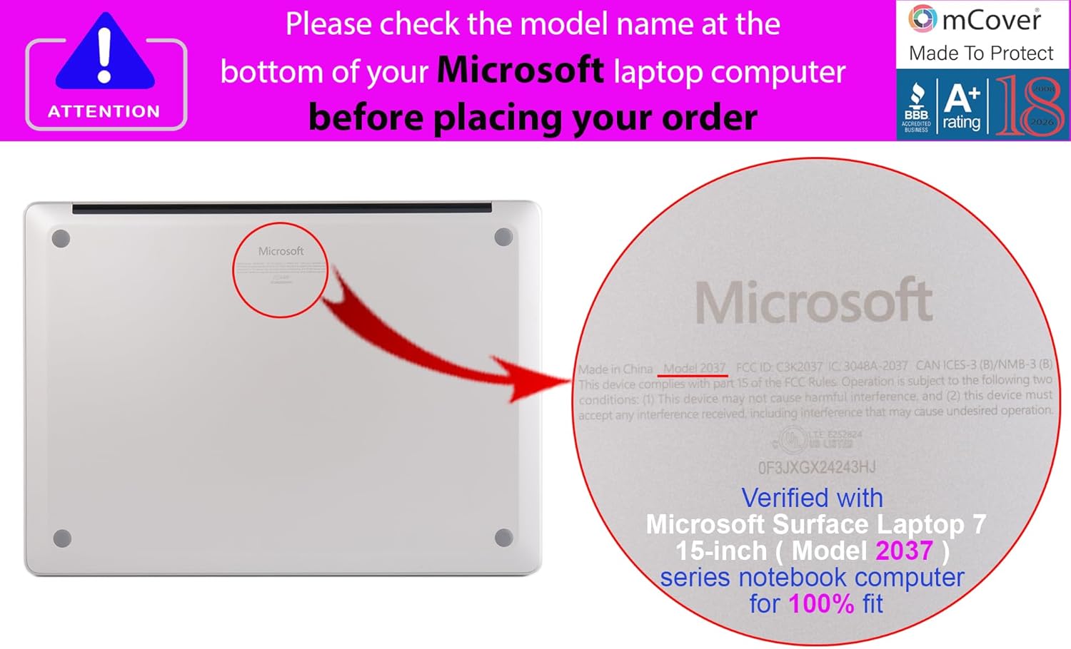 | Compatible Phone Models | 2024+ 15" Microsoft Surface Laptop 7 Model# 2037 with ARM CPU and AI-powered Copilot+ |