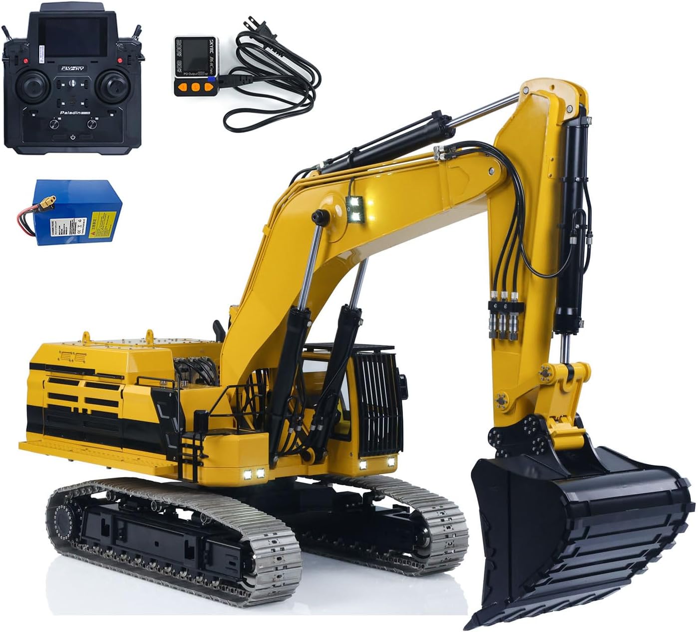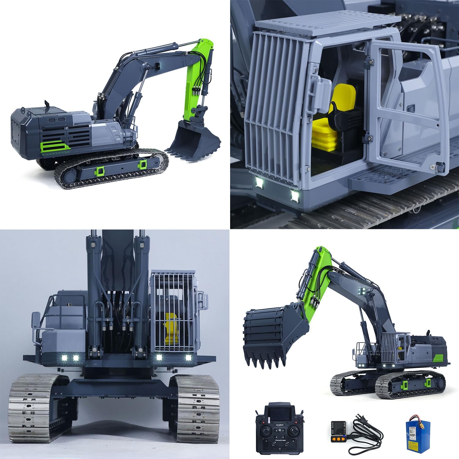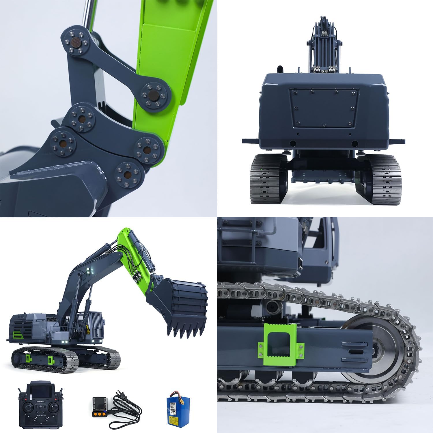 #RTR 1/12 Remote Control Hydraulic Excavator 395F Heavy Duty Machine Metal 6CH Valves RC Digger Brushless Motor ESC Quick Coupler #Specification: Item Condition: New, Assembled and Painted. Material: Metal, Plastic Scale: 1/12 Size: 1284*354*491MM Net Weight: 55KG Directional Valve: 6CH Oil Pump: 1.0L, 2PCS Motor of Pump: 6354 Brushless Motor ESC of Pump: 80A Brushless ESC Driving Motor & Rotating Motor: 2830 Brushless Motor Driving ESC & Rotating ESC: AM32 75A Brushless ESC Diameter of Boom and Arm Cylinder: 20MM Cooling Fan: 6000 RPM Cooling Fan ID: GZJC-BA-C395-RTR-UP2-PL18EVLITE-PENQI-GYGN #The Package Includes: 1/12 RC Hydraulic Excavator Model Motor Servo ESC Hydraulic System with Double-pump Light System Sound System Smoke Unit Flysky PL18EV LITE Remote Controller and Receiver Battery Charger #The Package Does Not Include: Hydraulic Oil #If you have any questions or are not sure whether it is the correct item you want, pls feel free to contact me before purchasing.